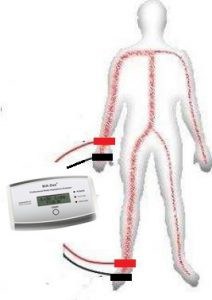 Il Bioimpedenziometro è un’apparecchiatura professionale costituita da 4 elettrodi, da applicare, rispettivamente, sul dorso delle mani e sul dorso dei piedi; ad essi vengono collegati dei fili conduttori, attraverso cui viene fatta circolare la corrente, che, attraversando le strutture corporee, subirà un calo della sua intensità dovuta all’impedenza associata alle strutture corporee; il segnale risultante (ovvero la risposta in termini di intensità elettrica) viene trasmesso ad un apparecchio trasduttore, che raccoglie i dati traducendoli in misure corporee. Anche le apparecchiature professionali non sono esenti da margini di errore, statisticamente si parla di uno scarto tra dato reale e dato rilevato di circa il 4%.