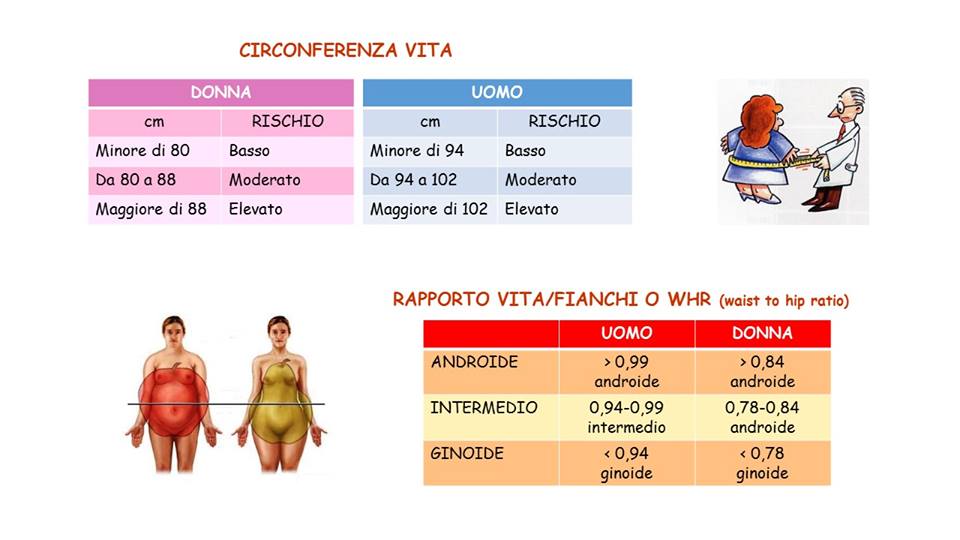 - per una donna si parla di basso rischio con una circonferenza vita inferiore a 80 cm, se tra 80-88 cm rischio moderato, se superiore a 88 cm rischio elevato!